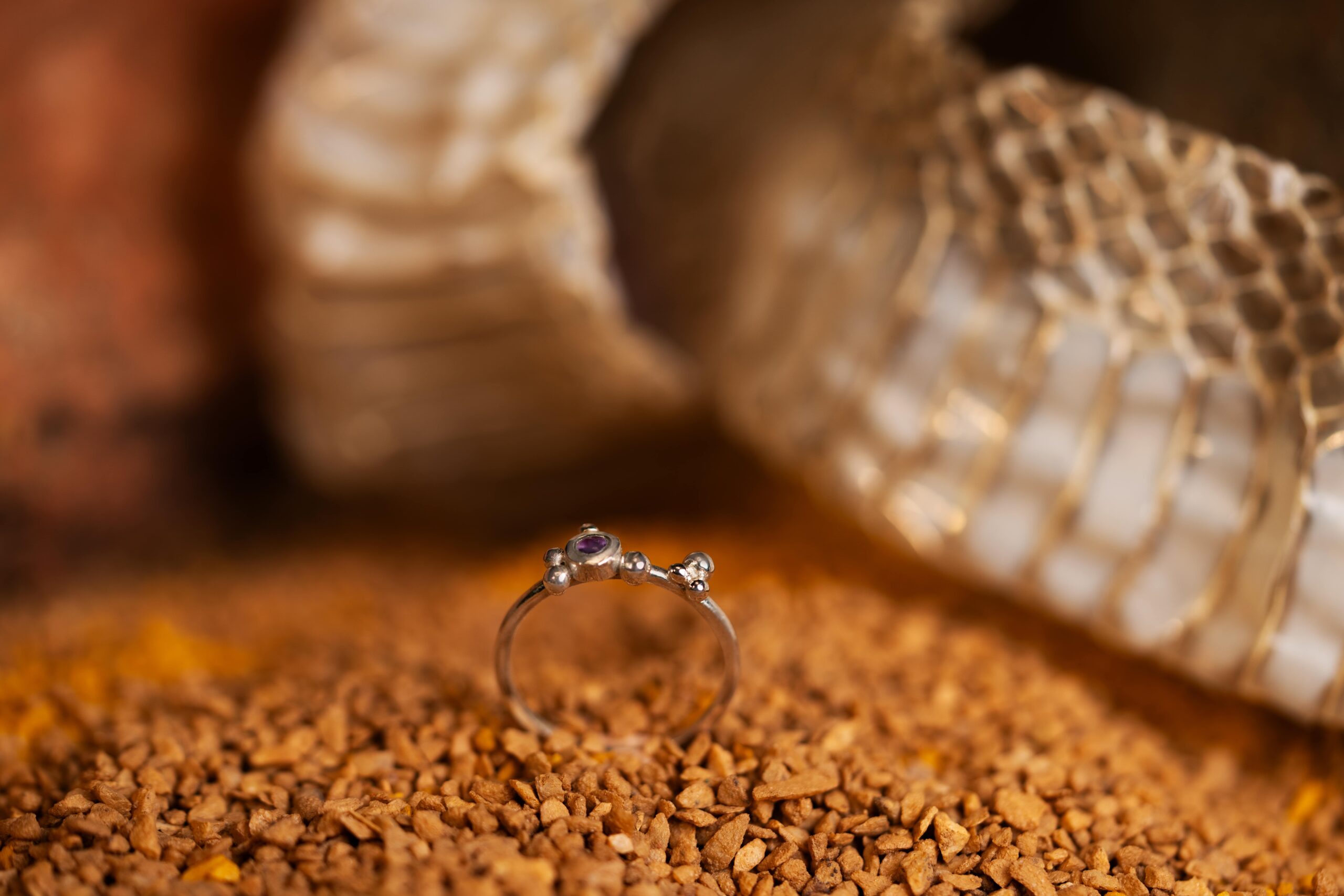• Amethyst, known for promoting inner peace and mental clarity, making this ring a piece of jewelry that not only decorate, but also nourishes the spirit.