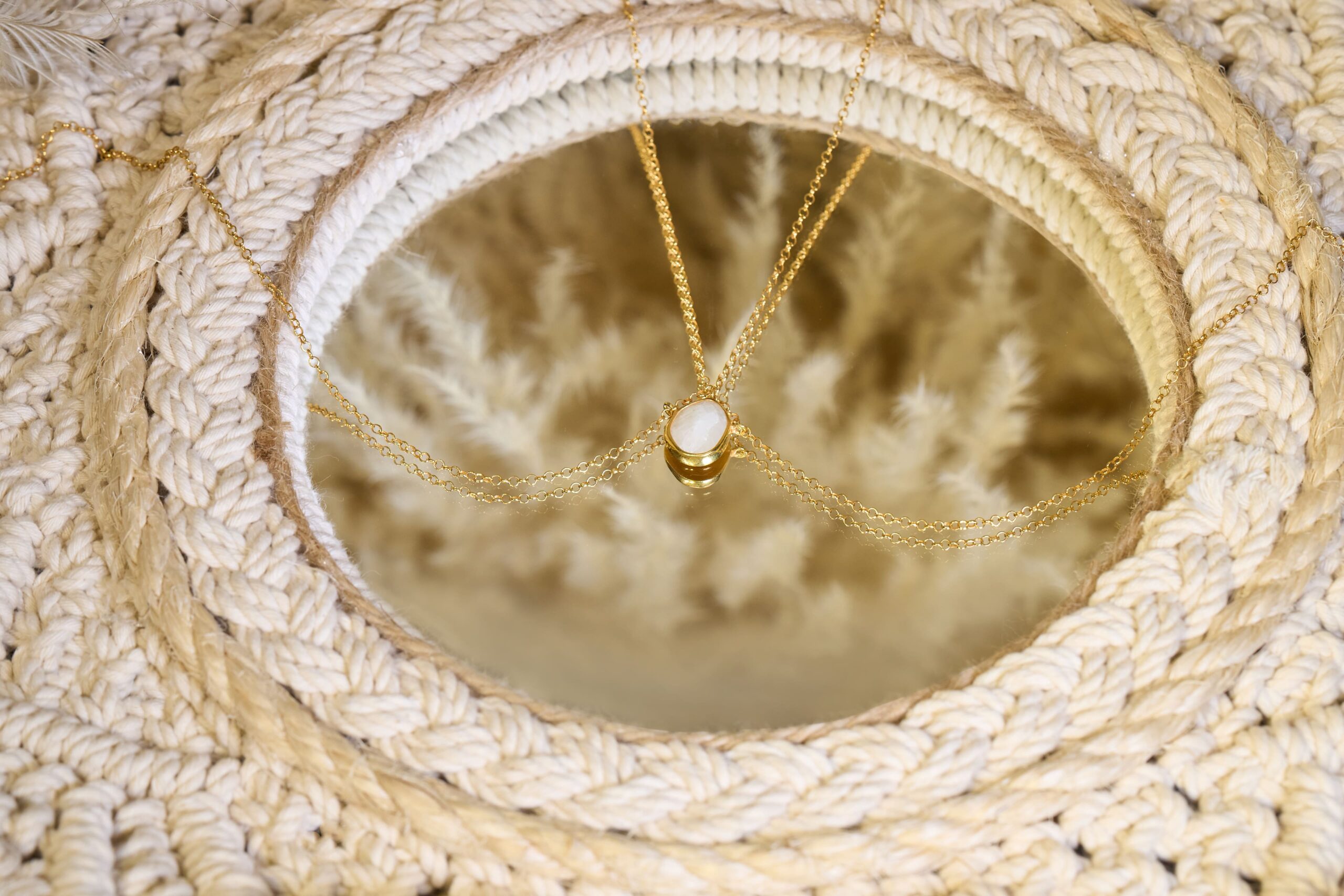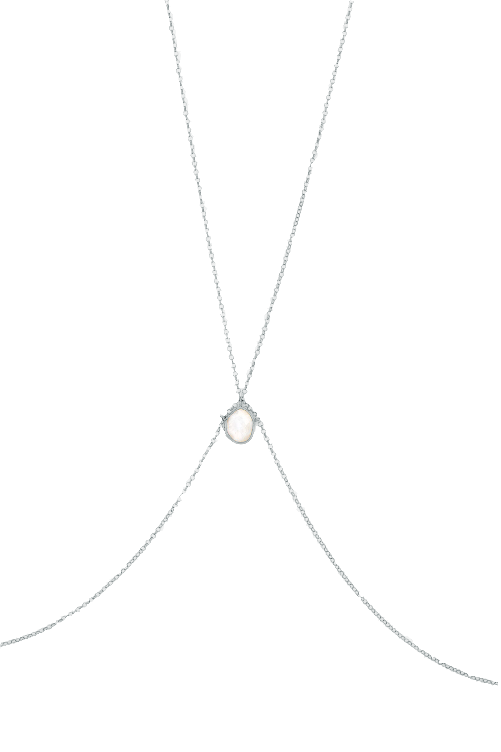 • El Bodychain Ayla destaca por su elegancia etérea con una hermosa piedra luna facetada en el centro, conocida por su poder para equilibrar emociones y fortalecer la intuición.
