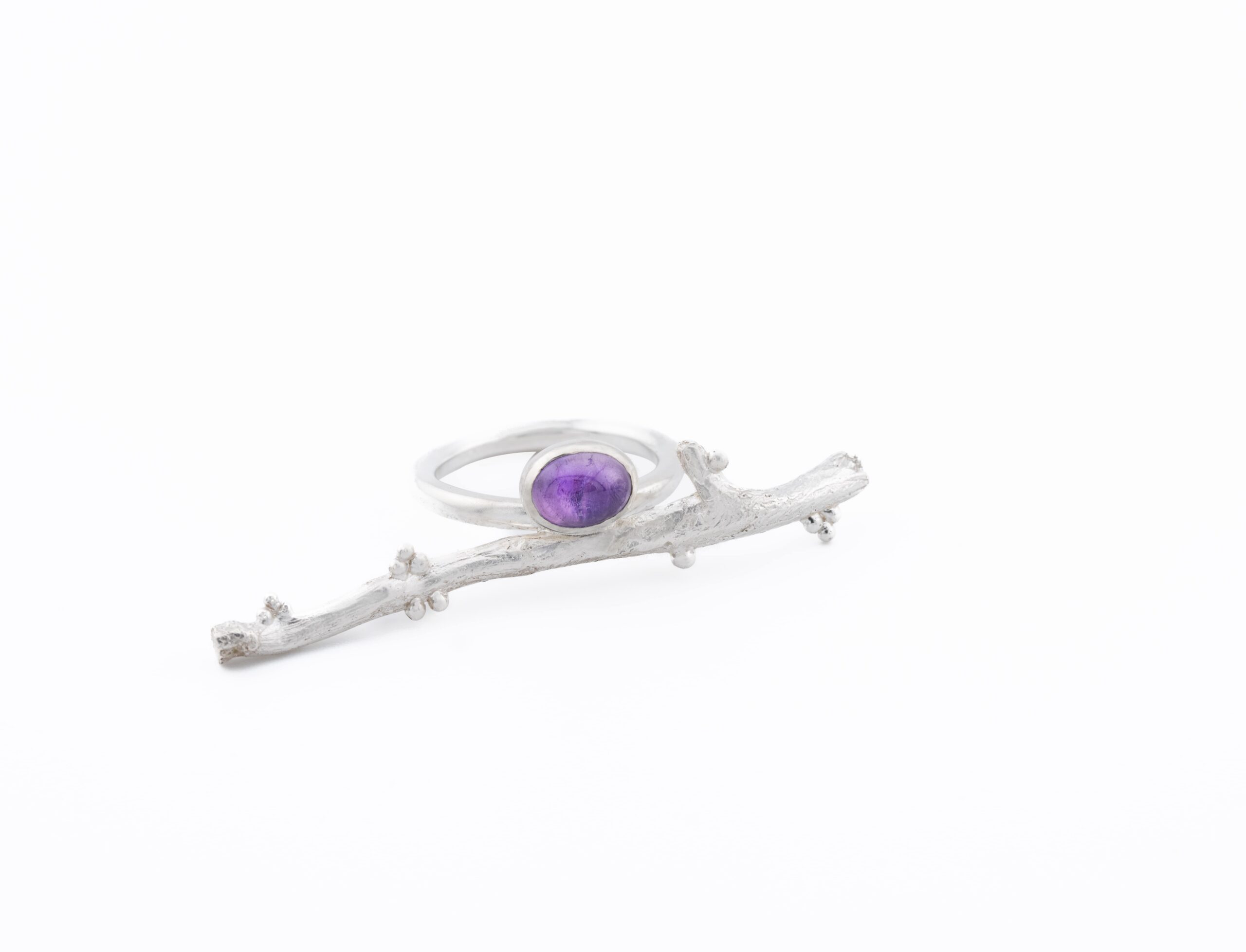 - Inspirado en una rama en florecimiento, acompañado de una impresionante amatista, que simboliza el “fruto” de esta transformación.